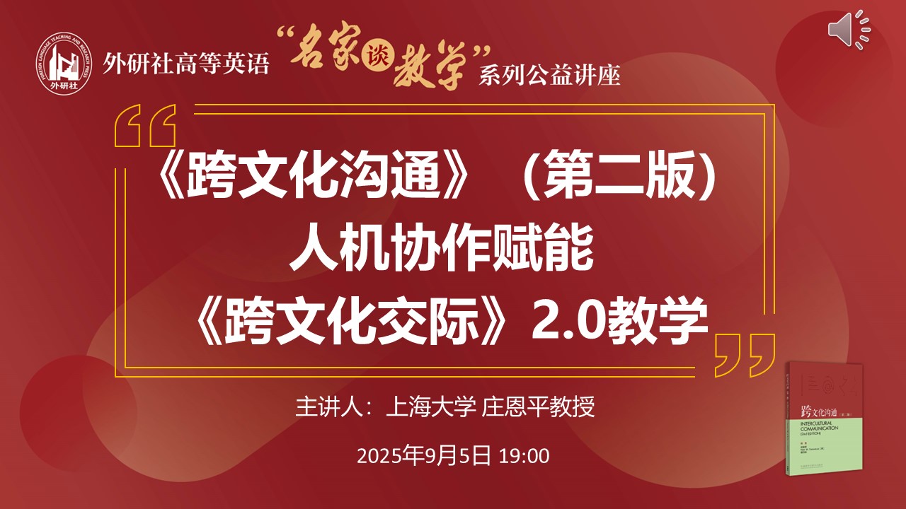“名家谈教学”系列公益讲座——《跨文化沟通》(第二版)赋能glocal跨文化国际传播外语人才