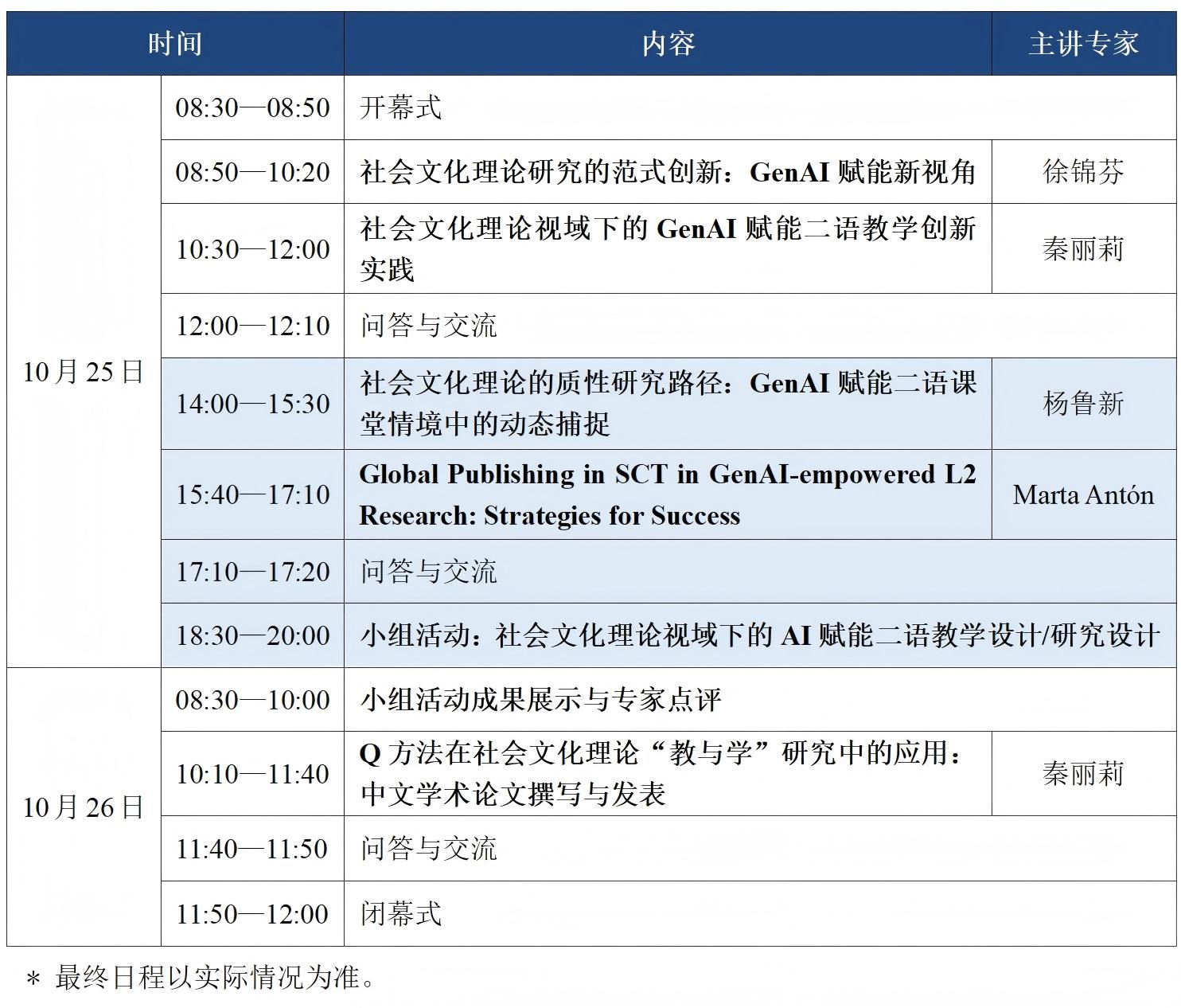 二号通知(开通线上+具体安排) | 社会文化理论视域下的GenAI赋能二语课堂前沿探索与实践研修班