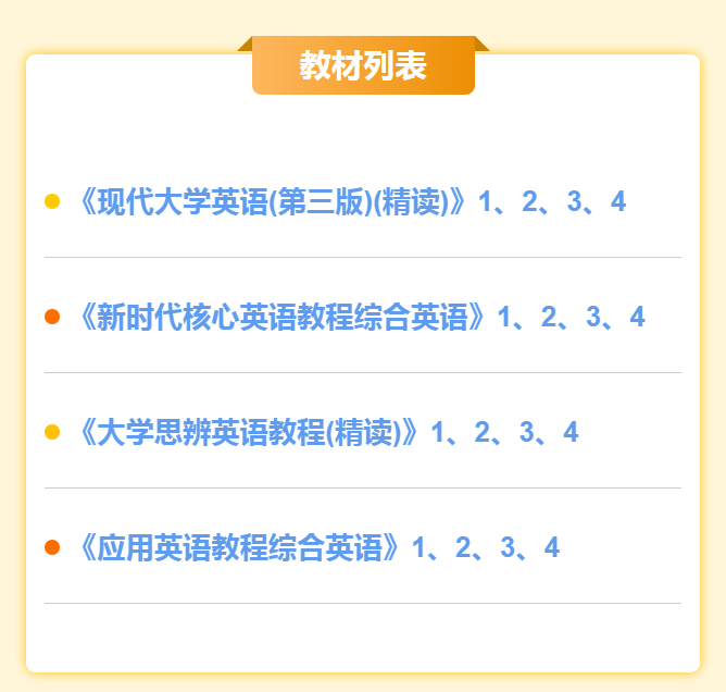 🔹好消息!使用下列教材最新版本的同学们,在激活比赛的同时,还可以激活一本专四备考词书,助力备赛,事半功倍。