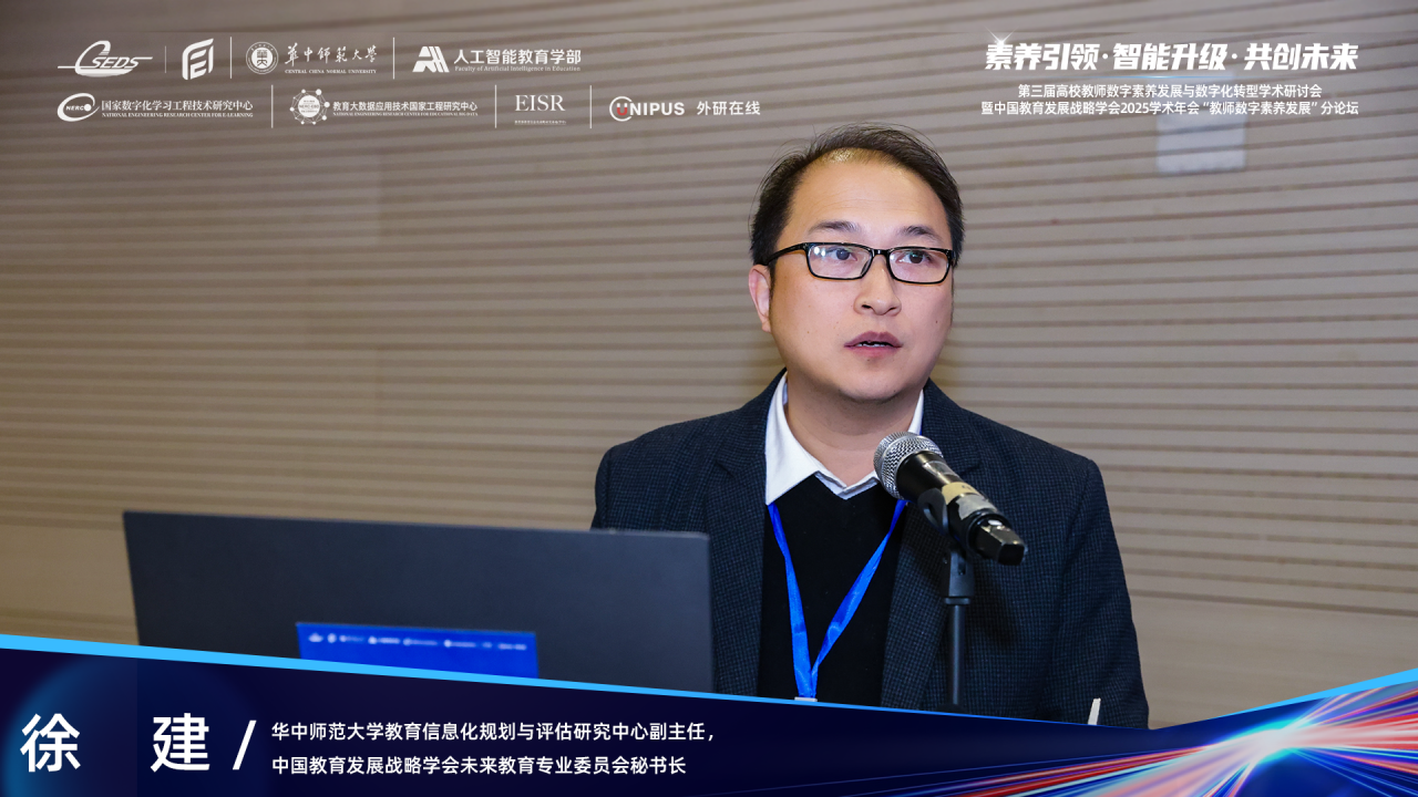 案例分享环节由华中师范大学教育信息化规划与评估研究中心副主任,中国教育发展战略学会未来教育专业委员会秘书长徐建主持。