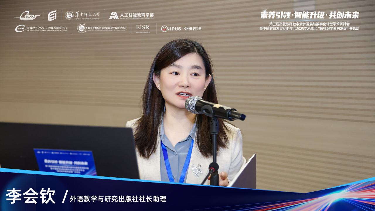 外语教学与研究出版社社长助理李会钦聚焦“素养引领 智能驱动:构建数字化赋能教师发展新范式与新方案”。她指出,基于对全国21所高校的深入调研,外研在线率先洞察教师数字素养发展瓶颈,创新性地构建了“测评诊断—培训学习—教学实践—科研引领—成果展示”五环联动的教师发展闭环体系。该体系依托iTeach平台,以个性化测评与AI师训课程精准“赋能”,以AI教师助手与智能课堂分析工具辅助“实战”,全程助力教师数字化能力跃升。此外,外研在线积极联合多方力量,通过共建专业委员会与示范基地校,成功打造了“高校—政府—企业—学院”协同发展的良性生态,为数字化赋能教师发展行动提供了可落地、可复制的实施路径。