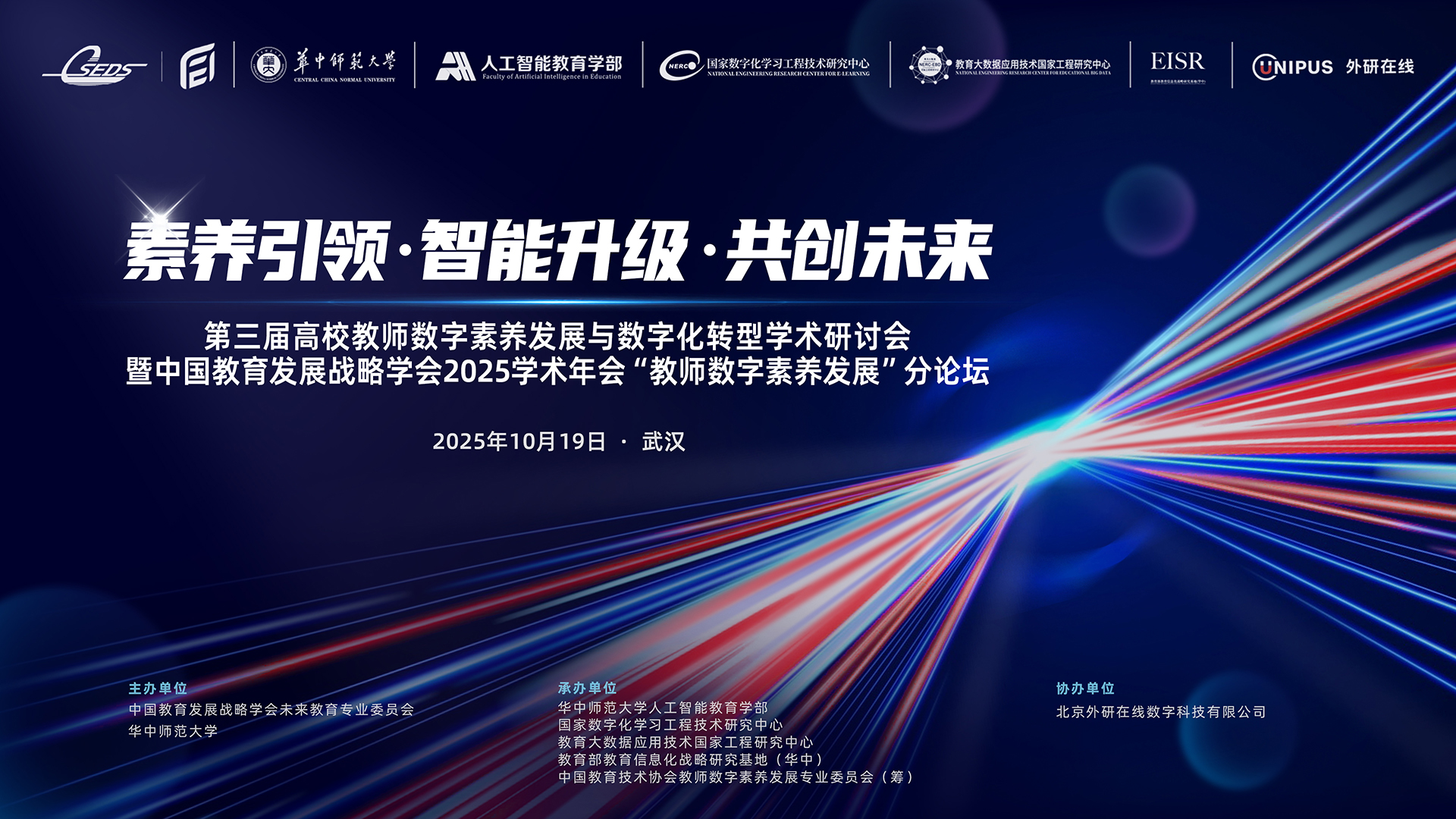 研讨会由中国教育发展战略学会未来教育专业委员会和华中师范大学主办,华中师范大学人工智能教育学部、国家数字化学习工程技术研究中心、教育大数据应用技术国家工程研究中心、教育部教育信息化战略研究基地(华中)、中国教育技术协会教师数字素养发展专业委员会(筹)承办,北京外研在线数字科技有限公司协办。