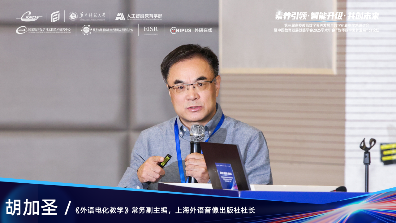 《外语电化教学》重点探索以外语教育技术为背景的外语教学方法、教学过程和教学内容。期刊常务副主编、上海外语音像出版社社长胡加圣分享了“AI教育生态背景下大学外语智慧教学模式的创新与实现”,强调大学外语教育需适应教育生态系统创新需求,构建以双智融合教材为交互中枢的大学外语数智教学模式,同时应关注“新、深、细、透”的期刊投稿标准,为外语智慧教育提供可复制、可推广的实践框架。