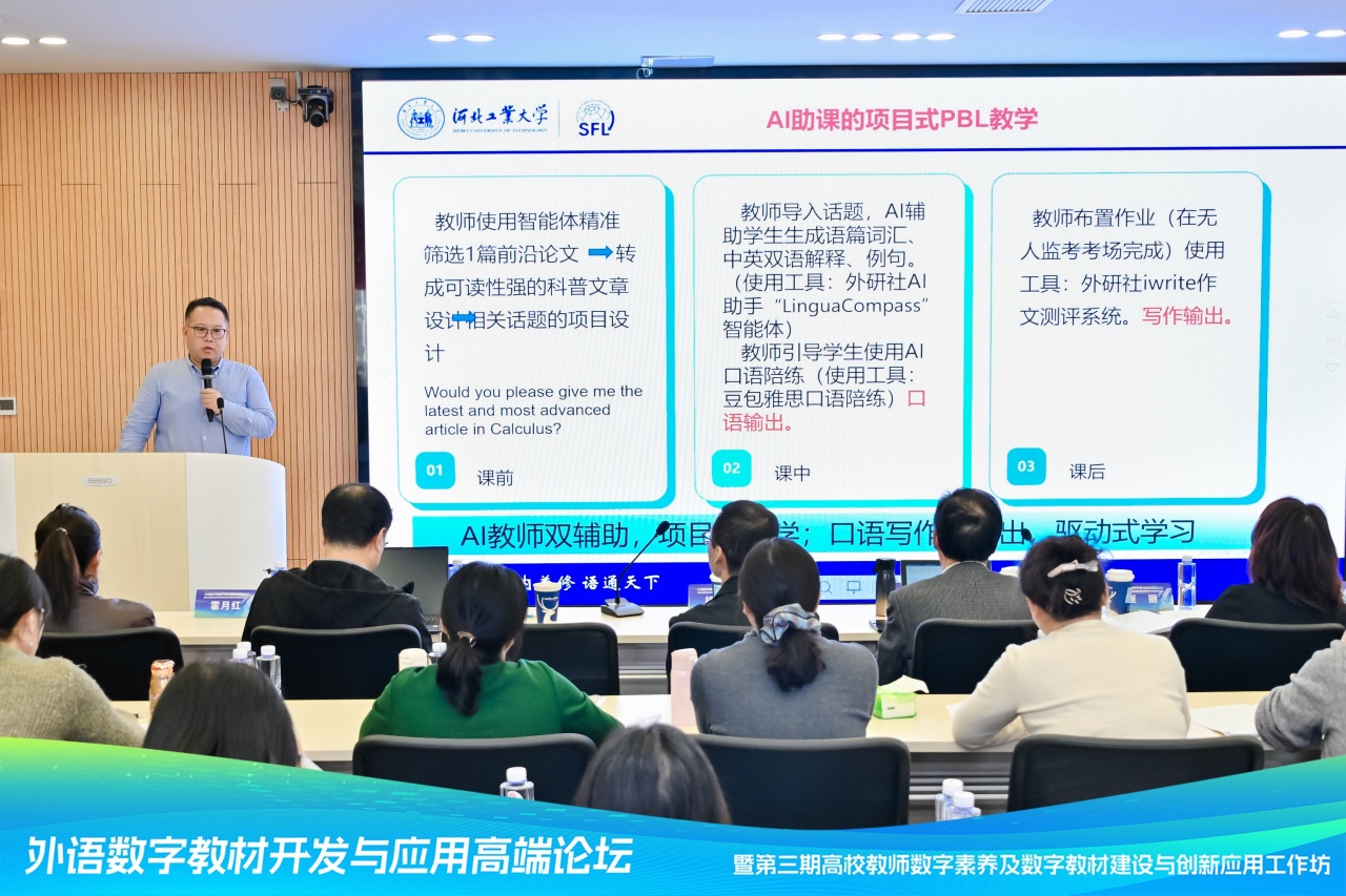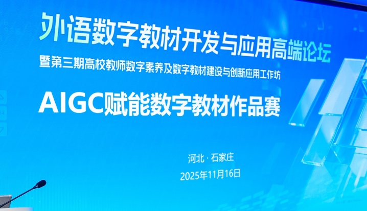 由北京外国语大学中国外语教材研究中心、河北省高等学校外语教学研究会及河北科技大学联合主办,北京外研在线数字科技有限公司承办的“外语数字教材开发与应用高端论坛暨第三期高校教师数字素养及数字教材建设与创新应用工作坊”,于2025年11月15日至16日在河北科技大学成功举办。来自全国各地29所高校的90余位教师共同参会。