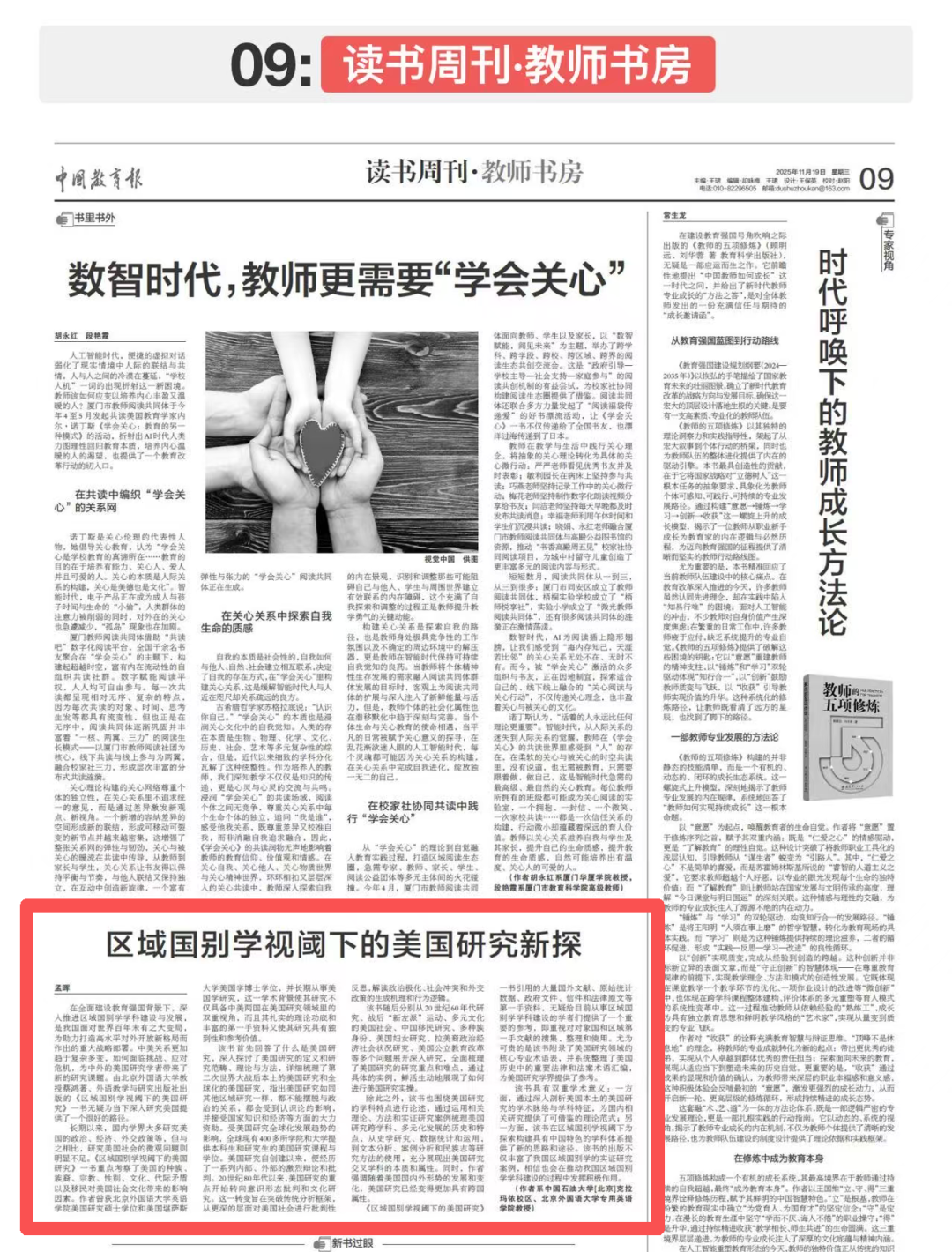 《中国教育报》刊登《区域国别学视阈下的美国研究》书评