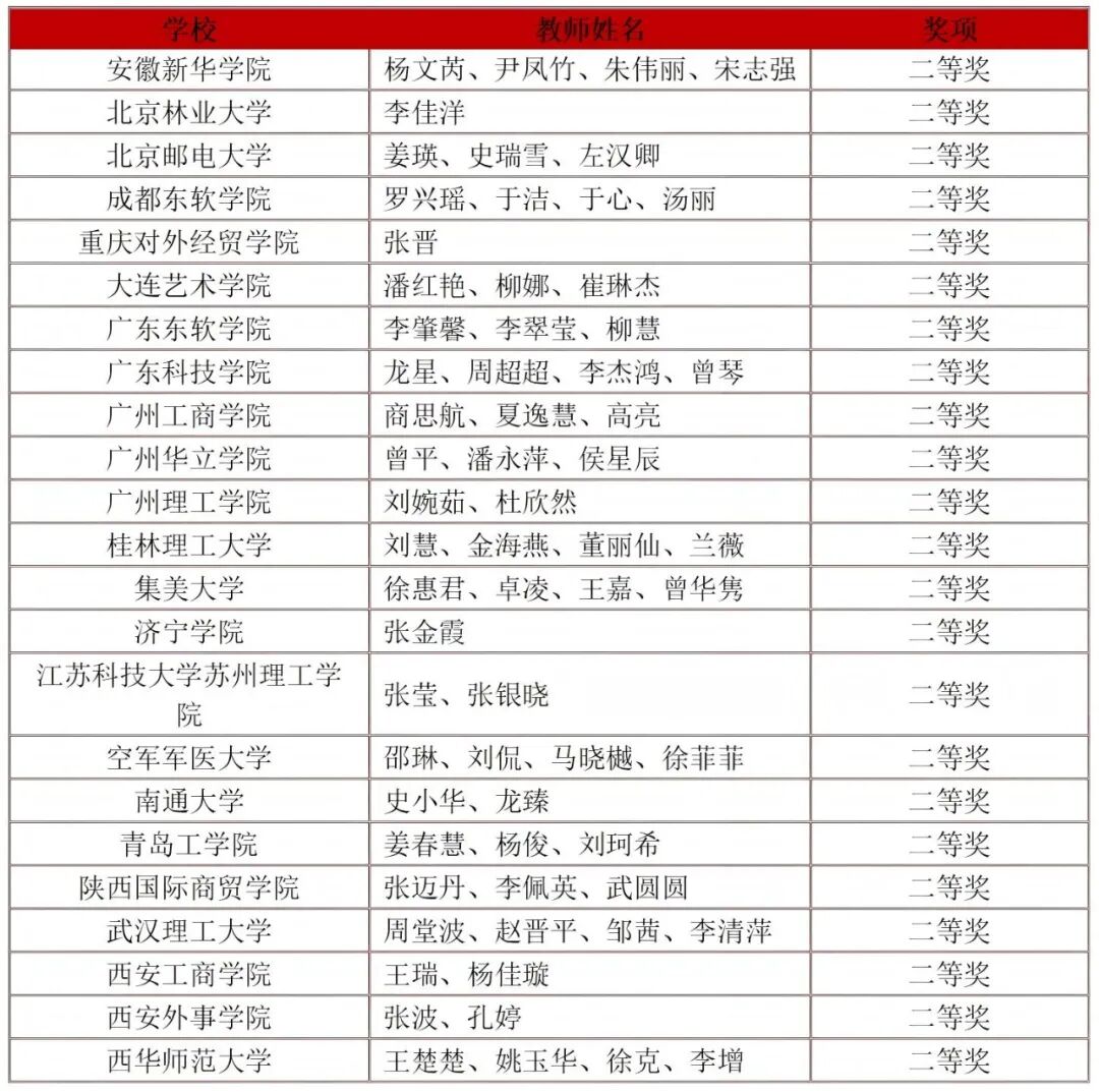 获奖名单