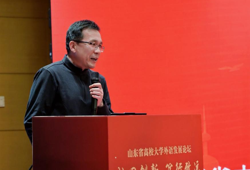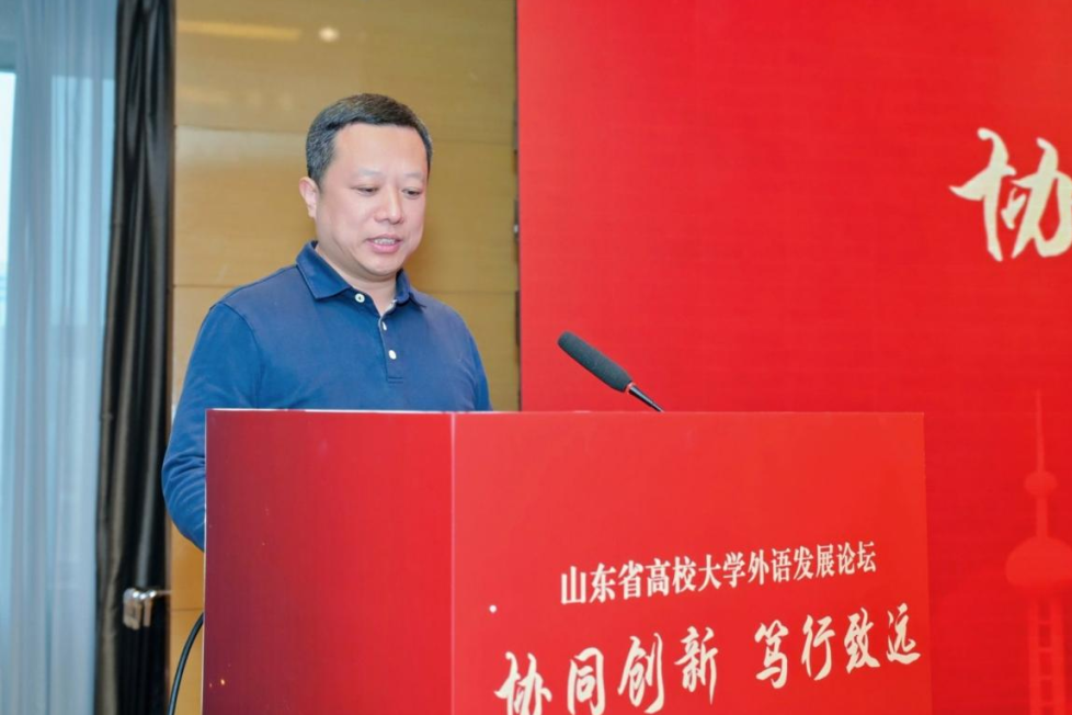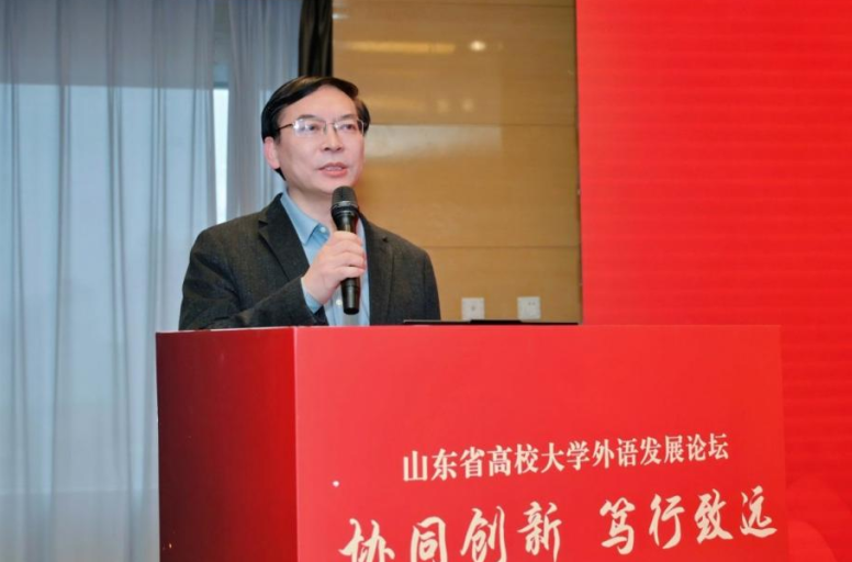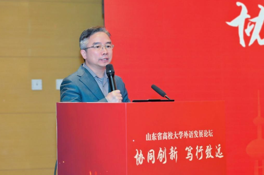 山东省本科教育大学外语教学指导委员会主任委员王广成教授在致辞中强调,本届论坛的举办适逢教育强国建设与人工智能技术重塑教育形态的关键节点,对山东外语教育的创新发展具有重要引领意义。他表示,过去一年,山东外语教育战线紧紧围绕立德树人根本任务,在扎实推进“三进”工作方面持续发力,有效强化了课程的育人功能;同时,以“四新”建设为引领,在课程体系优化与教学资源建设方面取得了显著成效。面对人工智能带来的深刻变革,他呼吁各方以本次论坛为契机,进一步凝聚共识、深化协同,共同探索技术赋能与学科本质相融合的创新路径,携手加快构建具有中国特色、世界水平的外语人才培养体系,为培养更多兼具家国情怀与国际胜任力的卓越人才、服务教育强国战略贡献坚实的山东外语教育力量。