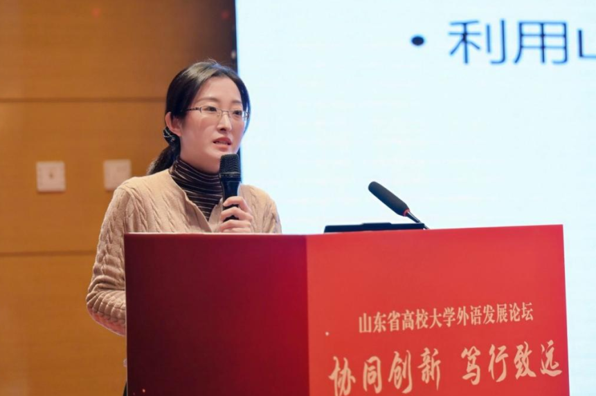 曲阜师范大学王福祥教授在以“守正创新·赋能育人”为题的报告中,结合校本实践,系统阐述了大学英语教学改革的体系化构建路径:在课程与教学资源建设方面,有机融合特色化内容;同时构建基于U校园AI版的混合式教学模式,促进个性化学习与精准评价;建立教师发展支持体系,通过有组织教研、海外访学等持续提升师资专业能力;打造多元评价体系,推动AI评分、学习追踪与社会化认证的有效衔接;建设“用外语讲好中国故事”培养体系,增强学生国际传播能力;深化校企合作,设立国才考试考点,衔接人才培养与职场需求。系列改革举措成效显著,学生语言能力与竞赛成绩持续提升,教师团队教学科研成果丰硕。