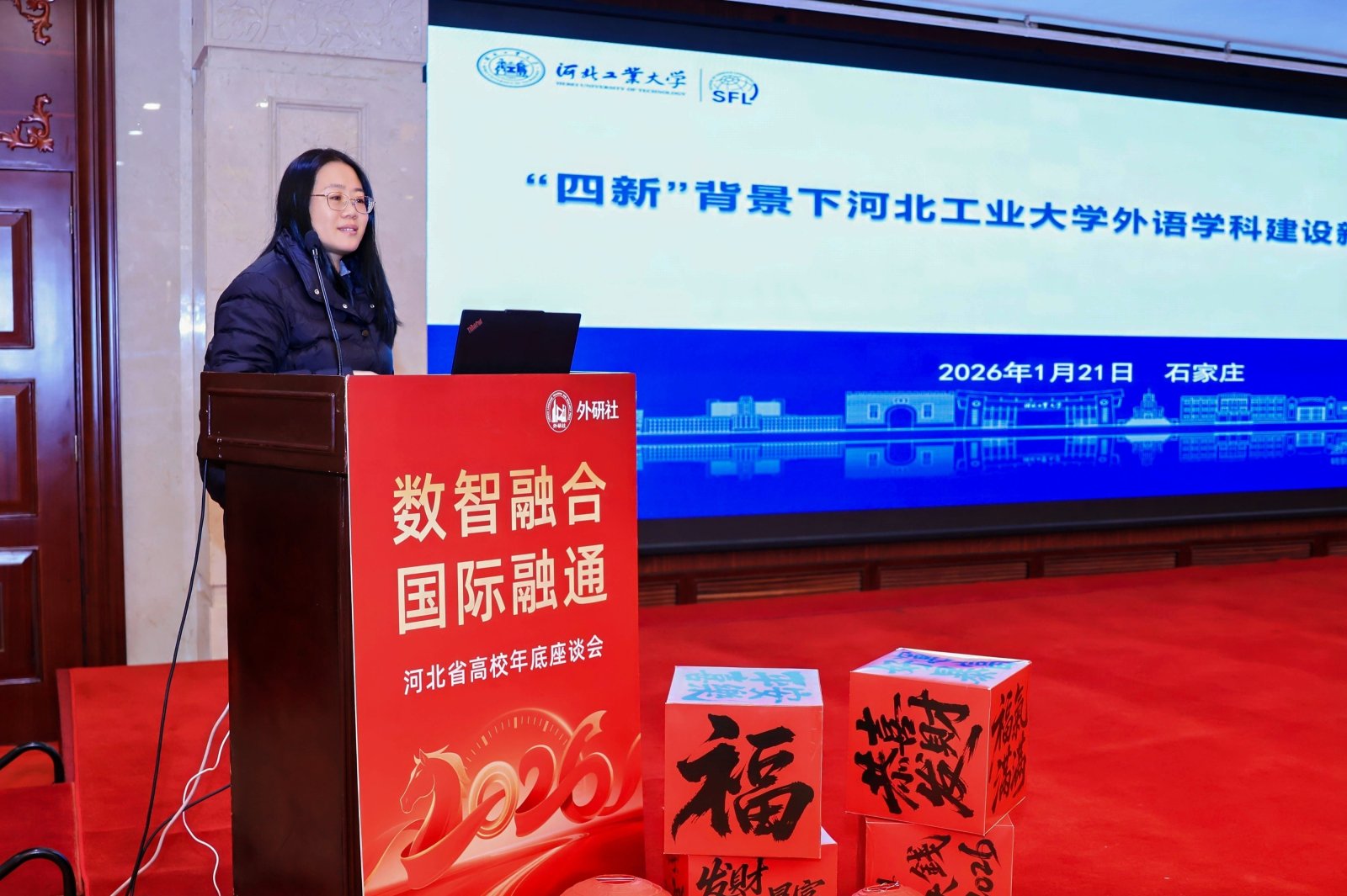1月21日,由河北省高等学校外语教学指导委员会、河北省高等学校外语教学研究会、外语教学与研究出版社联合举办的“外研社河北省高校外语教学年度座谈会”在石家庄召开。本次会议聚焦外语教育数字化转型与国际人才培养,汇聚国内高等外语教育专家、河北省各高校外语教学负责人及骨干教师,系统总结河北高校外语教育改革经验,深入探索新时代教学创新方向,致力于打造可复制、可推广的“燕赵样本”,为全国高校外语教育发展提供借鉴。