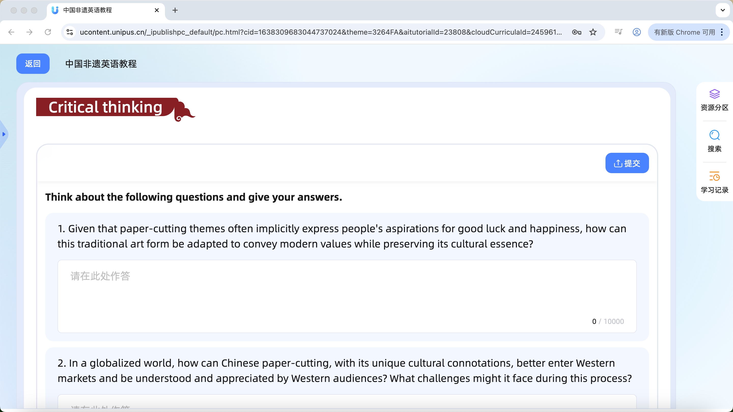 在上述政策背景与时代需求下,北京联合大学与外研在线联合推出《中国非遗英语教程》数字教材。教材以中国非物质文化遗产为核心内容,将外语教学、文化传承与国际传播有机融合,依托U校园AI版智慧教学云平台整合多媒体学习资源,服务新时代外语教育改革与中华文化“走出去”的国家战略需求。