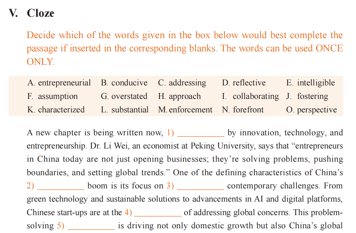 设计篇章理解、选词填空、句子改写、句段翻译、完形填空、听力、写作等练习,同步提升商务英语听、说、读、写、译等语言技能。