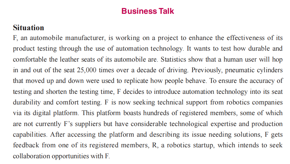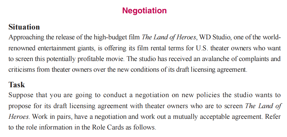 构建真实商务场景,有机融入中国商务实践,通过商务谈判、商务采访、会谈讨论等任务,培养学生在国际商务舞台展现中国形象、传递中国方案的跨文化商务实践能力。