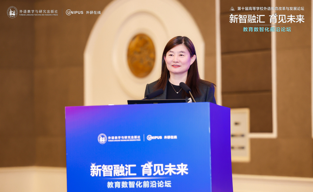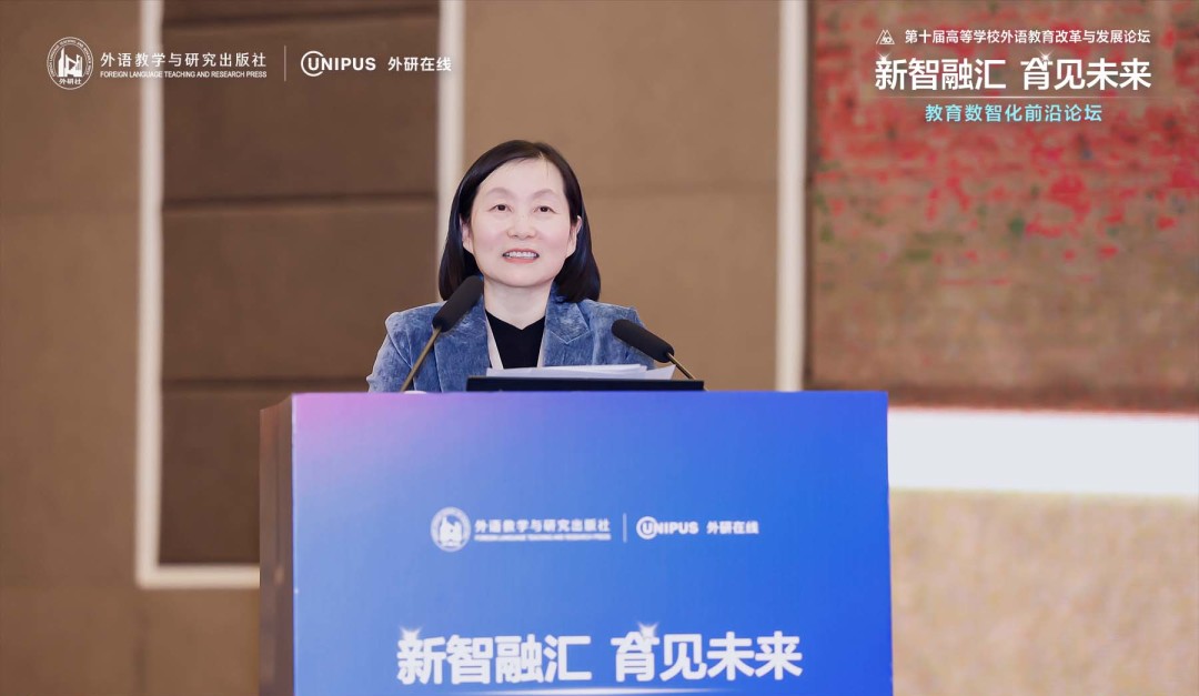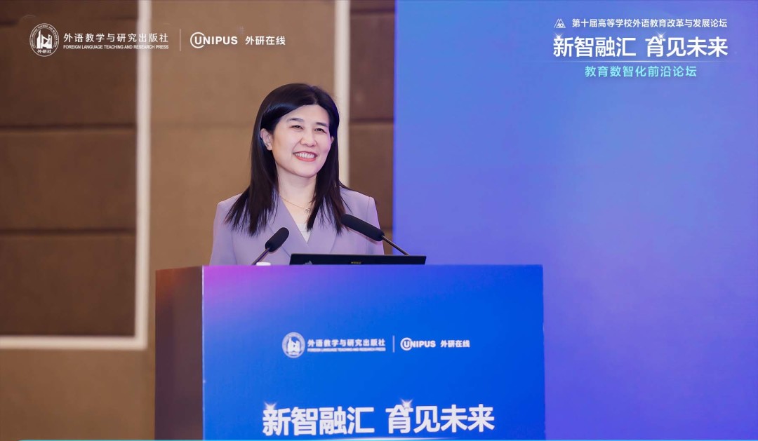 外研集团(外研社)党委书记、董事长,外研社社长王芳致开幕词。她指出,面向“十五五”,外研社依托“数智引领、数纸融合”的数字化战略,构建数智驱动的育人新生态,推动教材、课程、测评、赛事、实习实践等教学全要素贯通;打造国际化人才培养新智能,建设外语教育垂类大模型与多种教与学智能体,为教学提供专业化、科学化、智能化服务;贯通师生个性化发展全链路,通过智能平台和精准数据,助力教师专业素养横向扩展与学生综合能力纵向提升;激发多主体协同合作新活力,联合人工智能企业、行业协会、合作院校等多方力量,探索未来教育新机遇。