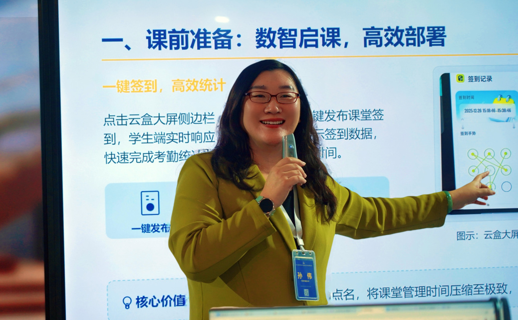 论坛期间,外研在线聚焦AIGC技术对教学的深刻影响,设置数字展区,对小U智能语言训练舱、学科型智慧教室、虚拟仿真实验教学系统、区域国别研究与人才培养AI平台、iTeach教师发展AI平台以及AI教师助手等进行了集中展示,并特邀南京邮电大学孙崀老师、天津外国语大学孙伟老师,以大学英语智慧教学课堂实践为例开展说课分享,展示了如何依托外研在线数字教育产品与服务,搭建学科型智慧教室,实现人才培养与教学提质增效。