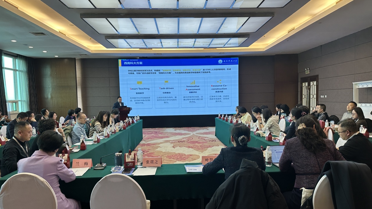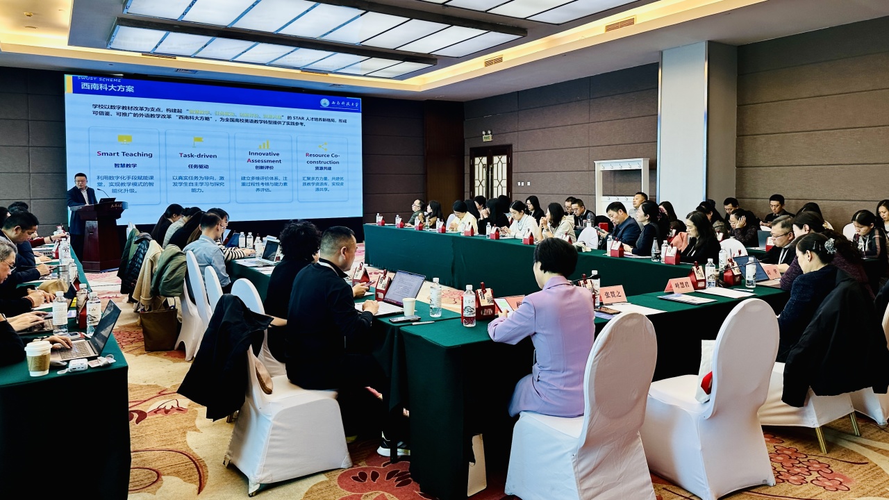 在专题分享环节,西南科技大学外国语学院与河北大学外国语学院团队分别作报告,系统展示各自在数字教材建设与教学应用中的探索成果。