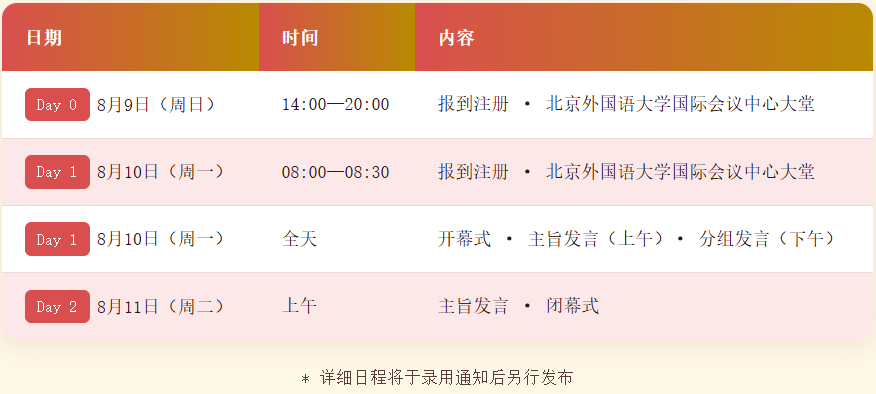 3. 会议时间:8月10日全天;8月11日上午
